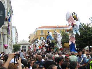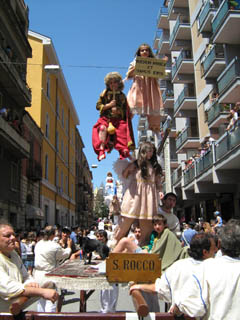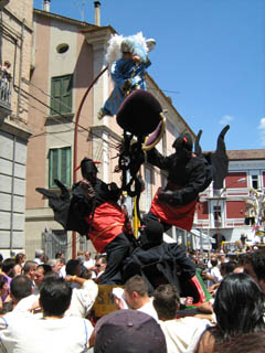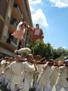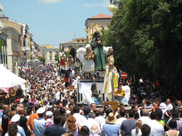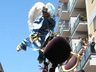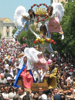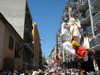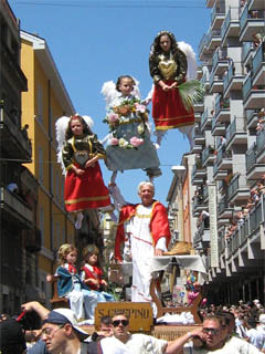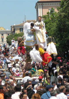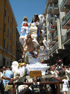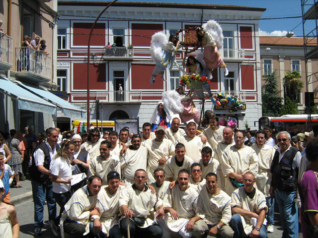 Sfilata degli ingegni ideati nel 1700 dall’artista Paolo Saverio Di Zinno. Angeli, demoni, Madonne e Santi benedicenti sfiorano il cielo su macchine condotte in spalla da decine di portatori che, al passo, imprimono alle figure il caratteristico movimento ritmato. Quadri viventi che riproducono scene sacre del Vecchio e Nuovo Testamento e storie di Santi. |