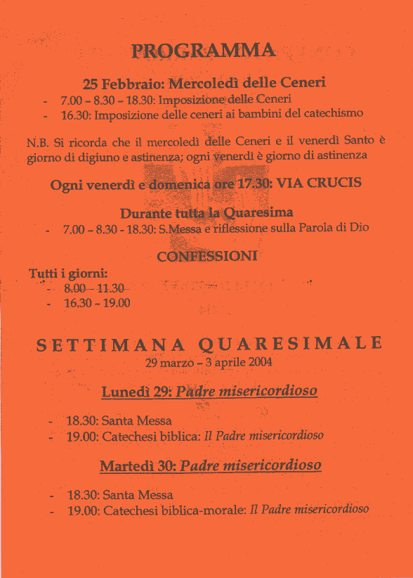 Celebrazioni Quaresima e Pasqua 2004