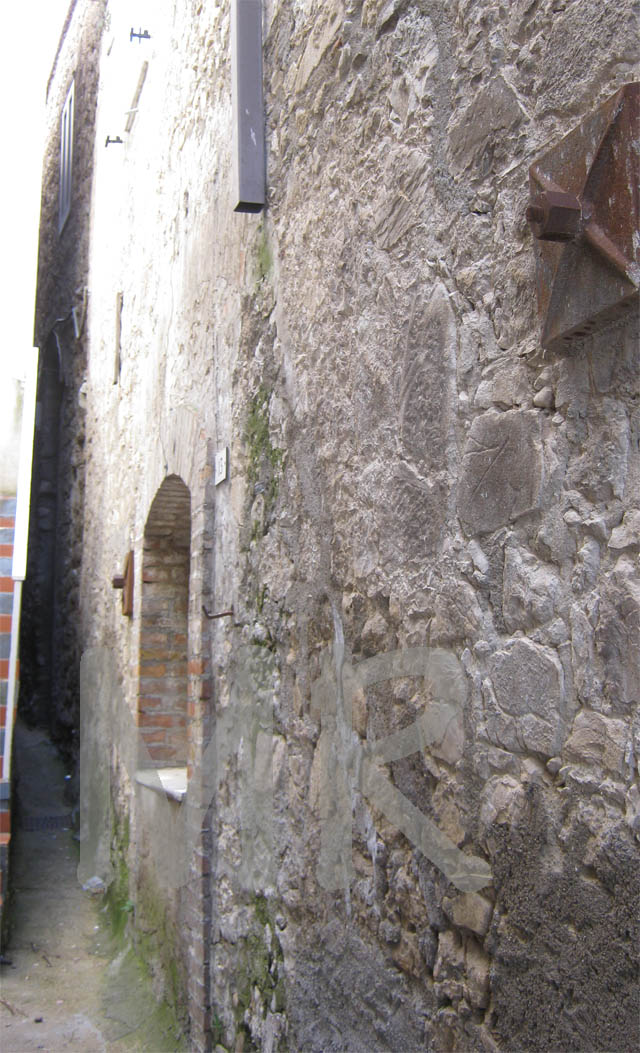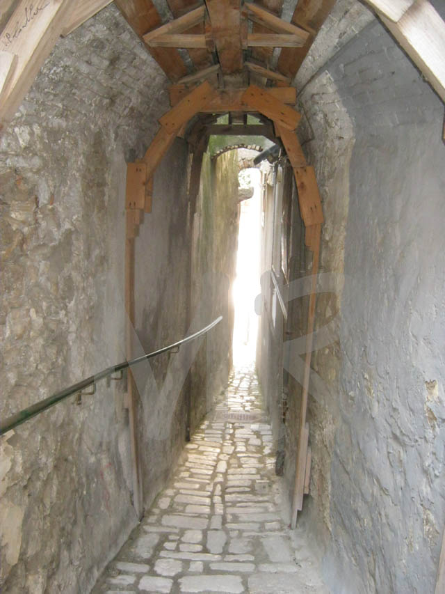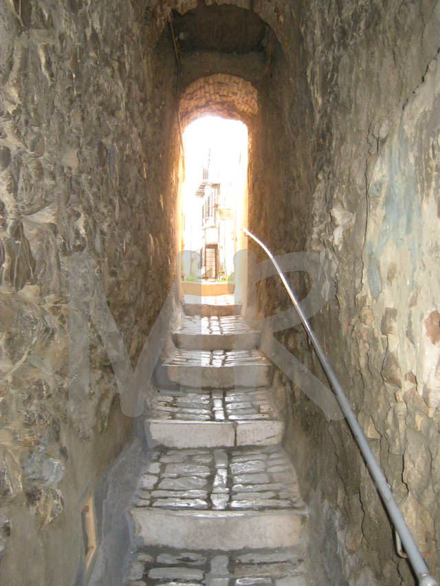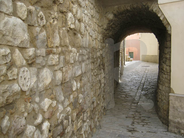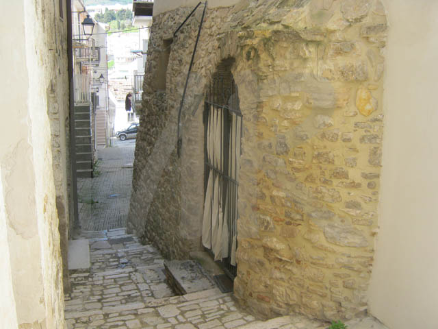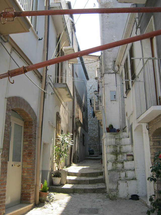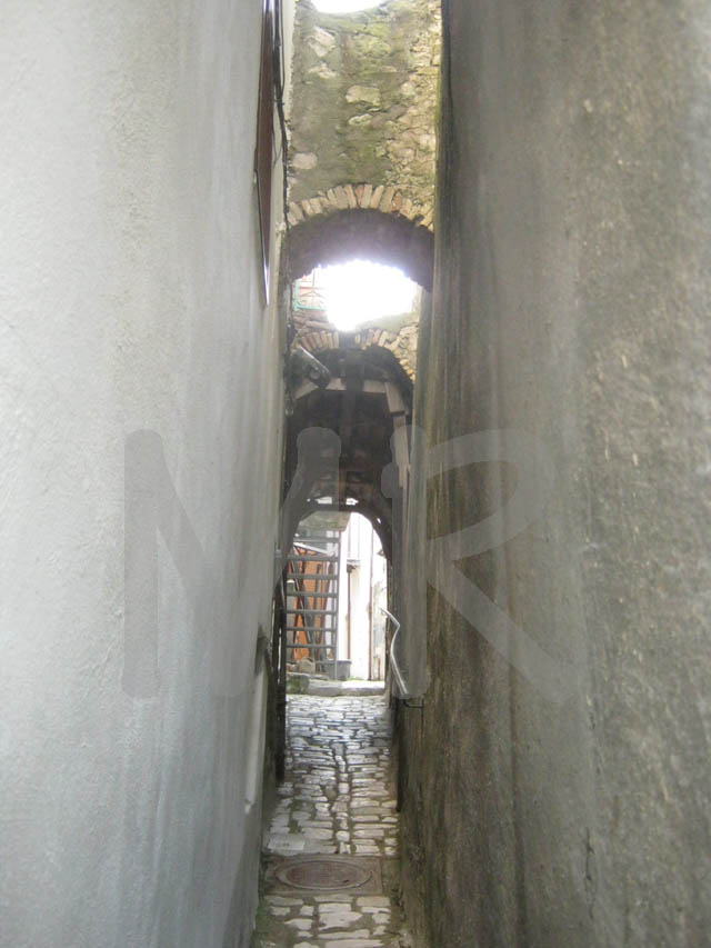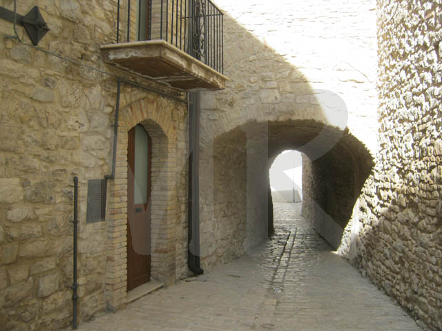 I vicoli, i "v'carell", sono la caratteristica del borgo, si dipartono, quasi a raggiera, dal punto più alto dove sono situati la Chiesa e il Palazzo. Tutti i vicoli, afferenti alle mura, sono aperti in prossimità delle stesse per permettere il deflusso delle acque. Quasi tutti i vicoli che sfociano sul lato sud del borgo, ad eccezione di quello che fa capo direttamente alla Porta Sud, terminano con una strettoia, tale da rendere difficoltoso il passaggio anche di una sola persona per volta. Una strategia difensiva per evitare, ai tempi, incursioni di massa all'interno del borgo. Sezione tematica con foto: Vicoli e ruare del Borgo Antico Tra file di case del borgo ci sono numerose strettoie o “ruare” di deflusso, usate un tempo anche per sversamenti domestici. Alcune "ruare" sono ancora individuabili, lungo quello che doveva essere il perimetro delle mura. Qualcuna è inglobata nelle sopravvenute costruzioni e qualche altra è definitivamente scomparsa dopo le recenti ricostruzioni post sisma.