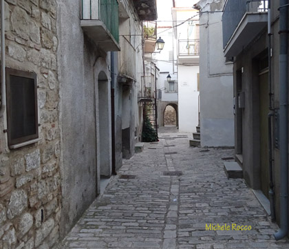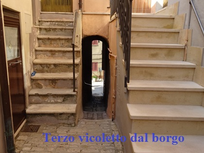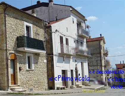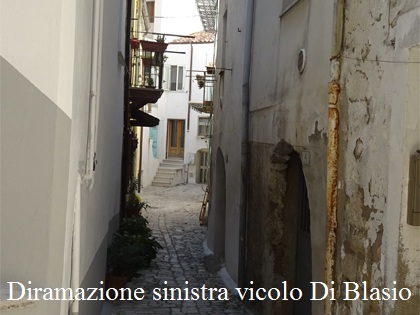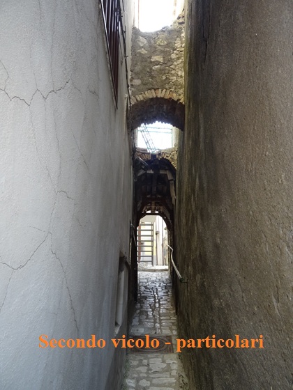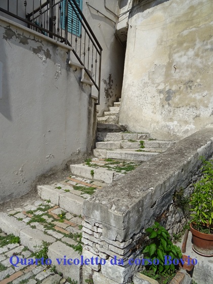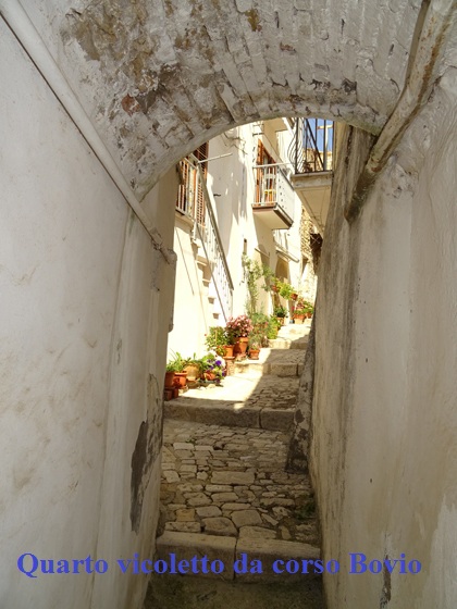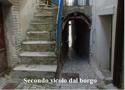 Se da vico Di Blasio proseguimo dritti arriviamo al secondo vicoletto sfociante anch’esso all’inizio di corso Bovio. E’ piuttosto angusto in entrata, non vi sono scalini ma vi è la pavimentazione in pietra in continuità col vicolo del borgo. | |||||||||||||||||