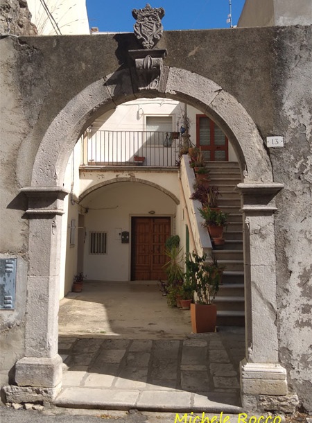 I Palazzi presentano in genere forme simmetriche (a volte alterate da interventi successivi), ma soprattutto hanno il loro ingresso in portoni con portali in pietra lavorata, terminanti ad arco, chiuso in sommità da chiavi di volta con particolareggiati bassorilievi. |