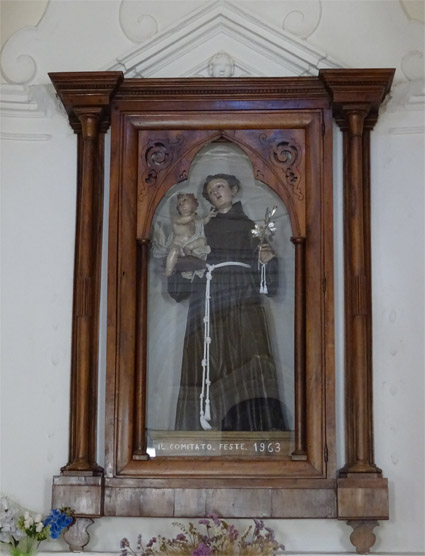 Nella navata di destra troviamo, in particolare, la cappella di Sant’Antonio, seconda in ordine di entrata, di cui si celebra la festa l’11 giugno. Ad essa è legato il nome della famiglia Campanelli ed in particolare di Don Romolo, grande benefattore, che volle che la festa fosse celebrata con spari e banda a sue spese. Tra l’altro dispose un contributo da darsi, con estrazione ad evidenza pubblica, a coppie di sposi indigenti, proprio nel giorno della festa del Santo (il 13 giugno).