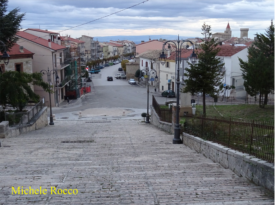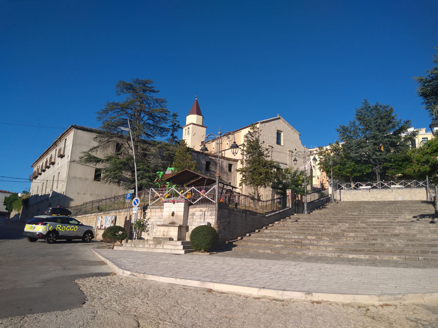 Il Monastero, detto comunemente anche Convento, situato alla sommità della monumentale scalinata, quasi a prosecuzione dell’ampio corso, fu costruito a partire dal 1730 per volere del Marchese Don Bartolomeo Rota, con l'approvazione del Vescovo di Larino, Monsignor Giovanni Andrea Tria. Lateralmente alla facciata della chiesa, su una modesta porticina, possiamo osservare un finestrino rotondo, in pietra, su cui il marchese ha fatto incidere in suo nome, a devozione. |