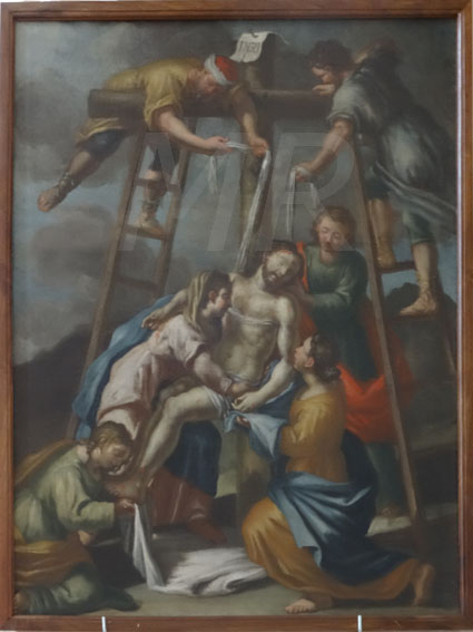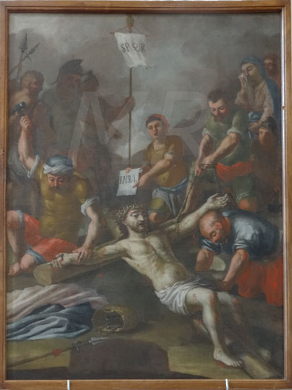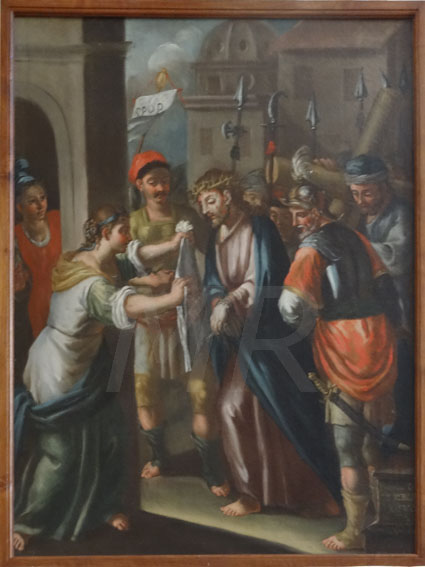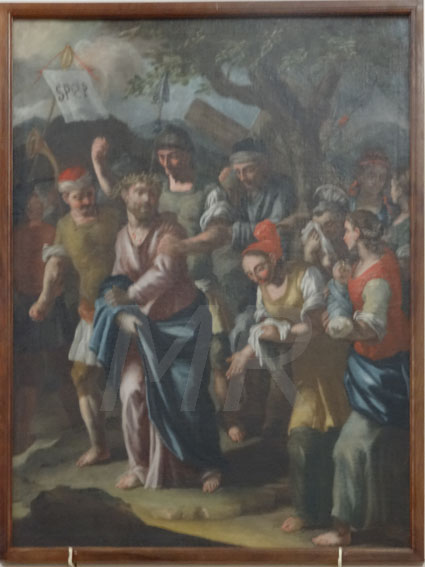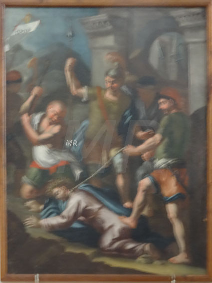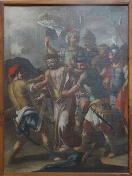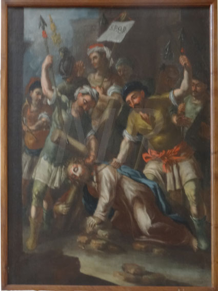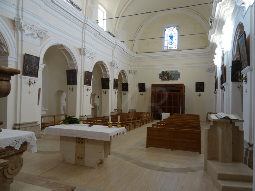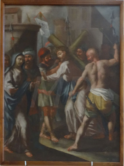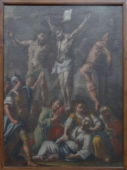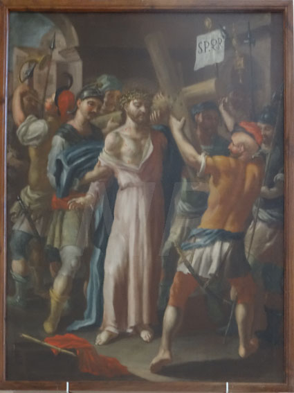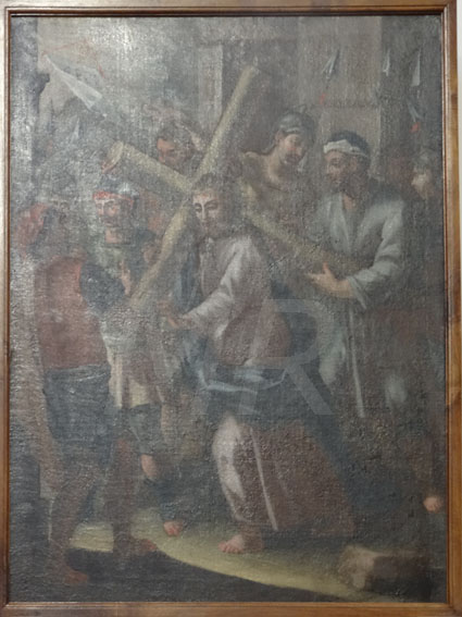 Paolo Gamba, pittore molisano di Ripabottoni, realizzò i quadri delle 14 stazioni a metà del 1700, su commissione del Mag.co Cresenzo Campanelli, almeno come figura dall'iscrizione su una delle tavole. Potrebbero anche essere state commissionate, in parte, dallo stesso Marchese Don Bartolomeo Rota unitamente al mecenatismo del Vescovo Mons. Andrea Tria che, individuato il talento del Gamba, lo inviò a formarsi nella scuola napoletana del Solimene. |