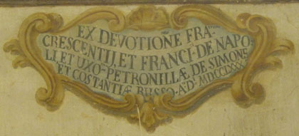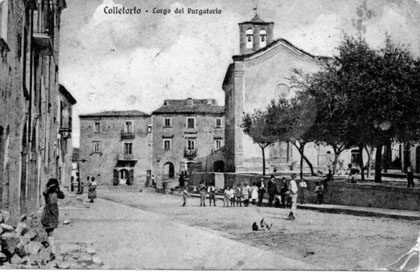 La Congrega del SS. Sacramento e dei Morti era legata inizialmente alla Chiesa Matrice. "Verso il 1726 i Confratelli e le Consorelle della Congrega, insieme con altri cittadini di Colletorto ebbero la divozione di edificare con le loro elemosine un Oratorio pubblico" (Vita Nostra - Speciale 1972). E' la Chiesa delle Anime Sante del Purgatorio nella quale venne trasferita la Congrega. Di questo fabbricato, però, il Vescovo Tria non ne fa alcun cenno nel suo libro, Memorie Storiche della Diocesi di Larino, pubblicato nel 1744. Le sepolture in questa chiesa o intorno ad essa figurano dalla seconda metà del 1700. La chiesa doveva essere già completata quando vi viene posto il quadro della Sacra Famiglia e delle Anime Sante Purganti, realizzato nel 1751 dal pittore Paolo Gamba su commissione di Marco Orsogna e Maddalena Cirinelli. Nel Purgatorio c'era anche la satua di San Michele opera dell'artista campobassano Paolo Saverio Di Zinno e posta nella nicchia a destra (quadro e statua sono ora è esposti nella Chiesa Madre). Nella nicchia di sinistra, più piccola, era sistemanta una statuetta dell'addolorata dello stesso autore, dispersa o ricollocata in qualche chiesa dei comuni limitrofi dell'area del Fortore. La data 1776 posta sotto il teschio dell'architrave penso faccia riferimento al riconoscimento ufficiale della Congrega. Sullo stesso architrave è riportata una scritta che ci ricorda dell'incertezza del luogo della morte. Sulla destra è inciso, inoltre il nome del committente, il Procuratore della Congrega Donato Cavallaro e sulla sinistra il nome dell'artefice Mastro Gennaro de Majo di Sant'Elia. Gli affreschi presenti all'interno della chiesa, fatti a devozione di singole persone sono datate a partire dal 1780. Sul mio libro ho riportato correttamente il numero romano MDCCLXXX, ma in modo errato la trascrizione in 1730. Allo stato di detoriamento degli affreschi è difficile individuare l'autore ma ritengo possibile il reperimento del suo nome in qualche documento di committenza. Nella relazione di Don Angelo Maesa del 1911 (V.N.nov-dic 1972) vengono descritti anche i Santi rappresentati negli affreschi: l'Immacolata Concezione, il Purgatorio, S, Andrea Apostolo, Maria SS Consolatrice delle anime purganti, S. Andrea apostolo, l'Assunzione e l'Annunciazione di Maria Santissima, San Pellegrino Martire e San Domenico; oggi i soggetti delle pitture sono difficilmente riconoscibili per il marcato detoriamento. Si possono ancora leggere, in qualche caso, i committenti e, come dicevo, le date della loro realizzazione tra il 1780 e il 1786 (come riportato sotto gli affreschi). |