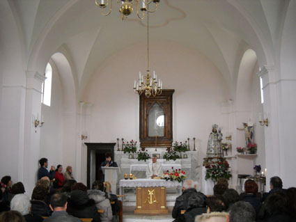 A questa chiesa è legato anche il nome di Don Romolo Campanelli, benestante e benefattore colletortése che, più volte contribuì al rifacimento della cappella. In essa sono seppelliti i suoi due unici figlioletti, morti in tenera età, ed egli stesso. Negli archivi parrocchiali vi sono atti di morte che fanno riferimento ad altre sepolture nel recinto della chiesa. In genere erano anch’esse persone appartenenti a famiglie benestanti. La chiesa subisce un restauro nell’anno 1990. Ed è proprio in quest’occasione che si scopre che anche Don Romolo è sepolto nella stessa camera funeraria dove giacevano i suoi figlioletti, situata al centro della chiesa, sotto il pavimento. Una lapide, con impressa una C, ne indica il punto preciso. |