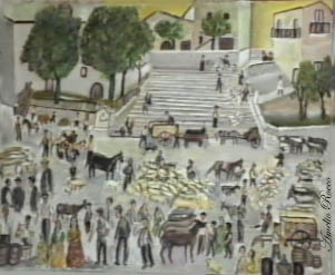 L’altro gioiello, appena riportato alla vista, è la chiesa del monastero e ricorda il periodo di espansione del paese e il definitivo congiungimento tra “colle” e “terra”. Si doveva dare un aspetto architettonico di continuità dell’ampio corso verso il colle e ciò avvenne nel 1700. Grazie alla munificenza del patrizio cremonese don Bartolomeo Rota, divenuto feudatario dei territori di Colletorto col titolo di Marchese, ma anche alla disponibilità, ai favori e al compiacimento del vescovo Mons. Tria, venne edificato il monastero con annessa la bellissima chiesa e, per accedervi maestosamente, la monumentale scalinata. Oggi, la scalinata, la vediamo usata per sfilate di moda, per rappresentazioni teatrali e per farvi discendere “veramente” una maestà con il suo seguito, la Regina Giovanna. L’uso che ne è stato fatto, prima dei nostri tempi, (non certo con la stessa valenza nobiliare, ma comunque con gran festa e partecipazione di popolo), è nei ricordi dei molti anziani e si tramanda, con i loro racconti, alle nuove generazioni. Se non sapete cosa avveniva durante la fiera che anticipava le festività, chiedete a loro! |