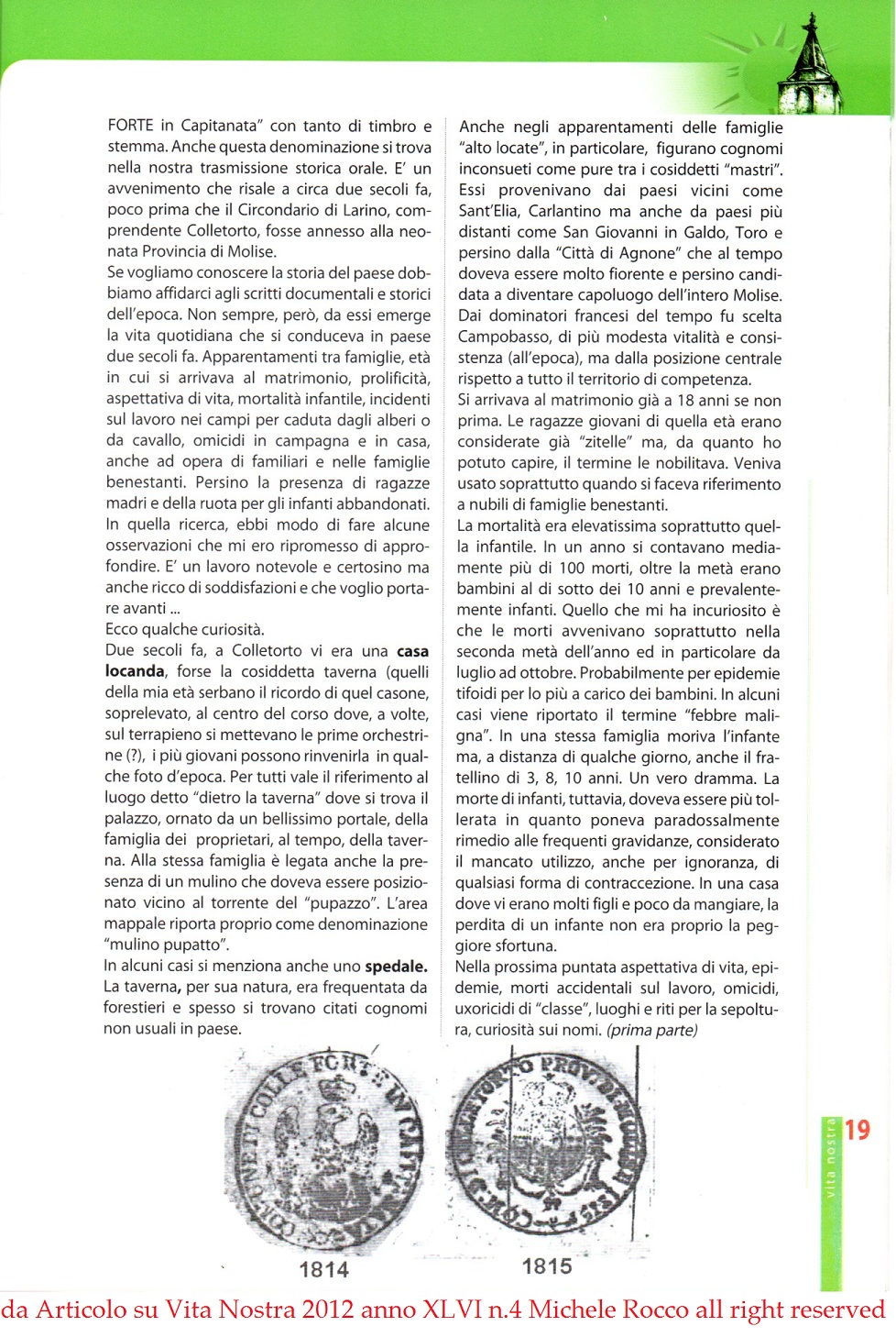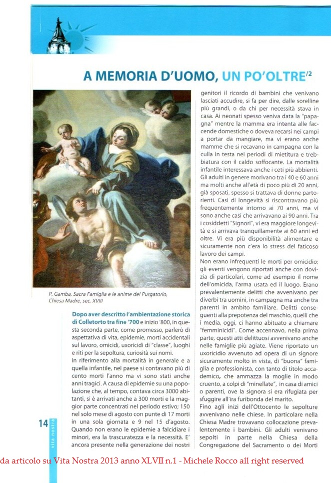 Questo articolo è frutto di più ricerche che ho condotto negli Registri Parrocchiali e nei Registri anagrafici di Colletorto (questi ultimi consultabili anche presso l'Archivio di Stato di Campobasso) | ||