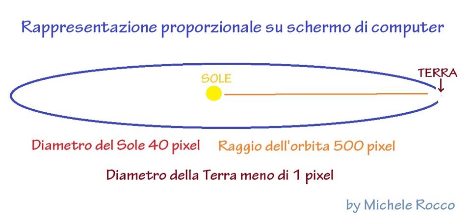 Chiaramente i disegni sono relazionali e non proporzionali. In un modello proporzionale con il Sole di 1 metro di diametro, la Terra sarebbe di 1 centimetro e disterebbero tra di loro di oltre 100 metri. Qualcosa di non rappresentabile sullo schermo di un computer, a meno di non rendere la Terra quasi invisibile. Infatti sullo schermo del computer (come su un foglio A4), per rappresentare il movimento di Rivoluzione, il Sole dovrebbe essere di circa 1 cm e la Terra risulterebbe invisibile (solo 0,1 mm, cioč un decimo di millimetro, spessore di un capello). Quindi tutti i modelli rappresentati sui libri sono solo di tipo relazionale e non proporzionale.
