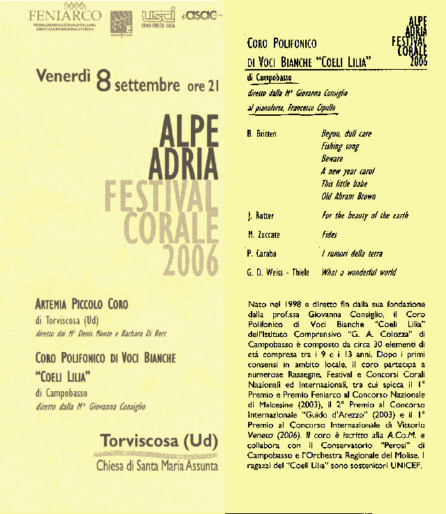 Il Coro "Coeli Lilia" in rappresentanza della coralitą molisanaa Lignano Sabbiadoro