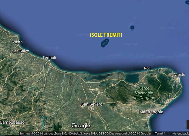 Il Mar Adriatico bagna ad est il Molise per un tratto di circa 35 chilometri, dal confine con l'Abruzzo, a nord, nei pressi della foce del fiume Trigno, alla foce del torrente Saccione a sud, confine con la Puglia. Ad alcune miglia dalla costa troviamo le Isole Tremiti , che geograficamente appartengono alla Puglia. Le isole sono raggiungibili dal porto di Termoli in motonave o jet. Nei giorni tersi è possibile avvistare le "Diomedee" (l'altro nome con cui sono conosciute le isole), il Promontorio del Gargano e il lago di Lesina da alcuni paesi molisani, anche dell'entroterra. |