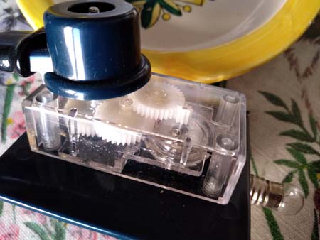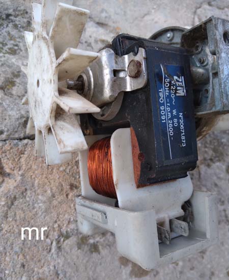 Nella forma più semplice, anche se non la primitiva, come in questa della figura accanto (pompa di lavatrice), il cilindro rotante viene messo in movimento dalla corrente elettrica che fluisce nell'avvolgimento di rame.