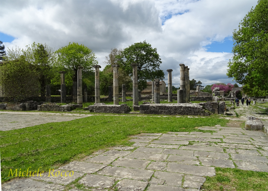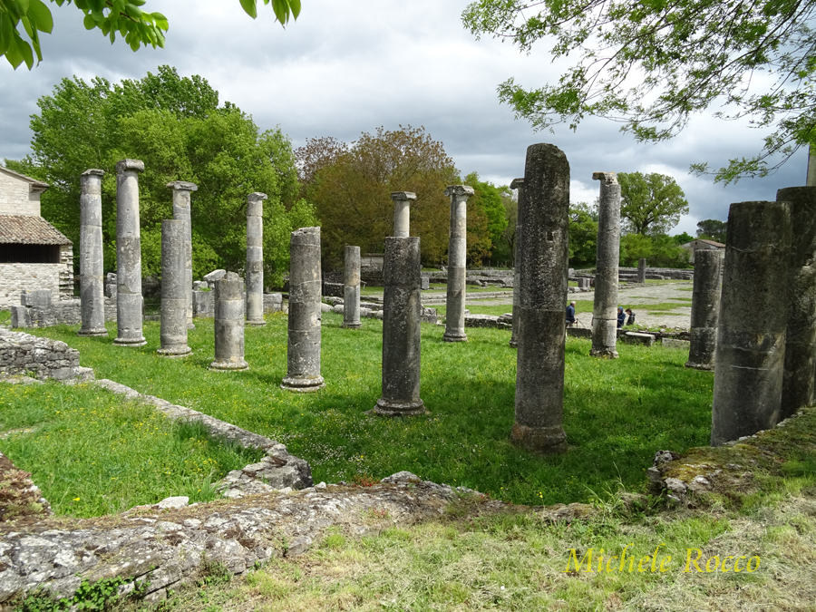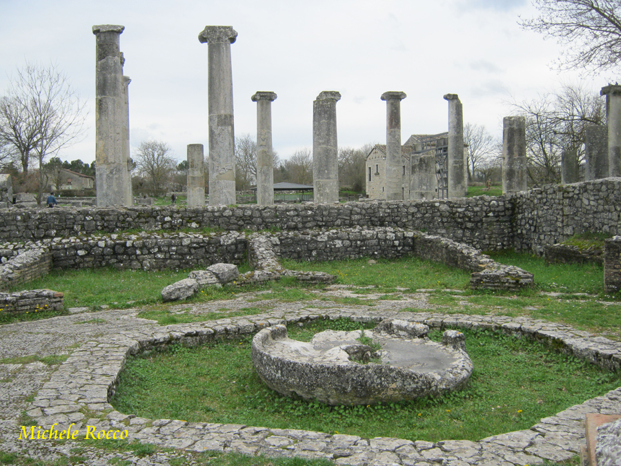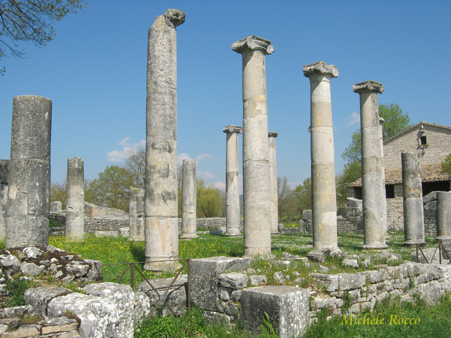 All'incrocio del cardo con il decumano, troviamo l'edificio più rappresentativo, la Basilica, con le imponenti colonne a capitelli ionici. Possiamo definirlo come il simbolo dell'area archeologica. Un luogo polivalente per l'amministrazione della giustizia, per transazioni commerciali. Un luogo di incontro e per osannare l'imperatore. |