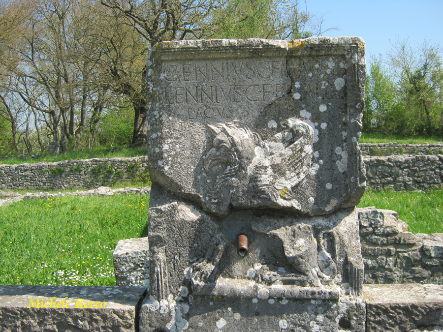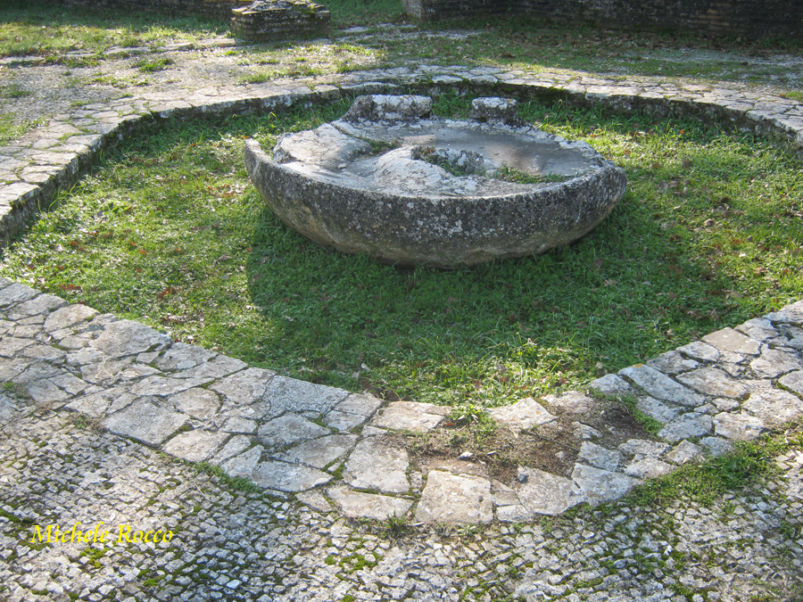 Nella confluenza del decumano, proveniente dal lato Benevento, sul foro, troviamo la fontana del grifo. La denominazione è dovuta al particolare bassorilievo che vi è rappresentato. Una griglia in pietra permette il deflusso dell'acqua. |