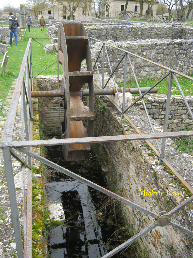 Poco più avanti troviamo la ricostruzione di una ruota idraulica. | ||