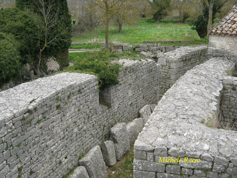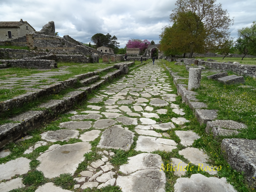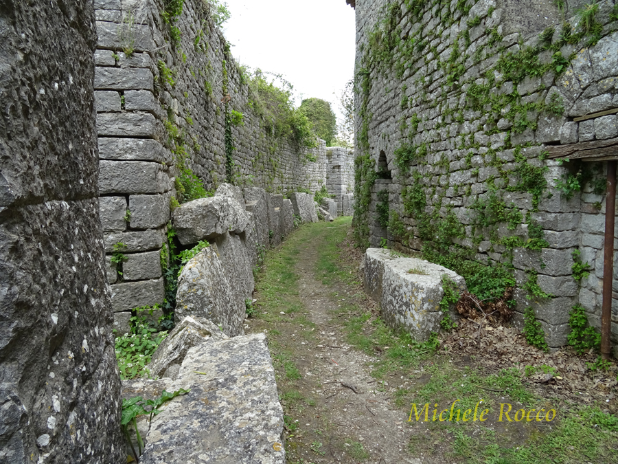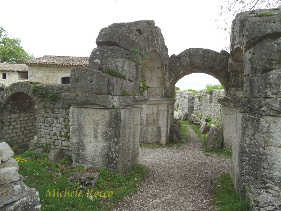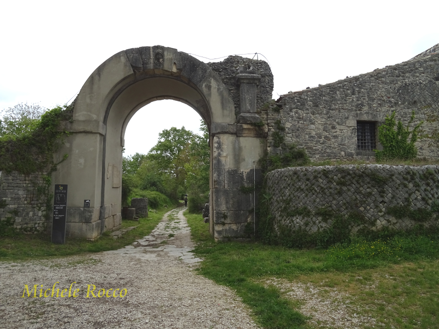 Alla città si accedeva attraverso le porte. Al decumano si accede attraverso le due porte. La su menzionata Porta Boiano, di grande imponenza, ricostituita quasi interamente con i reperti dell'epoca. Appena entrati da questa porta si possomo notare dei sistemi di separazione in pietra, che, all'epoca, servivano per contare gli animali che arrivavano in massa, in modo applicare la tassa di passaggio. Tassa su cui, evidentemente, si reggeva l'economia della città. | ||