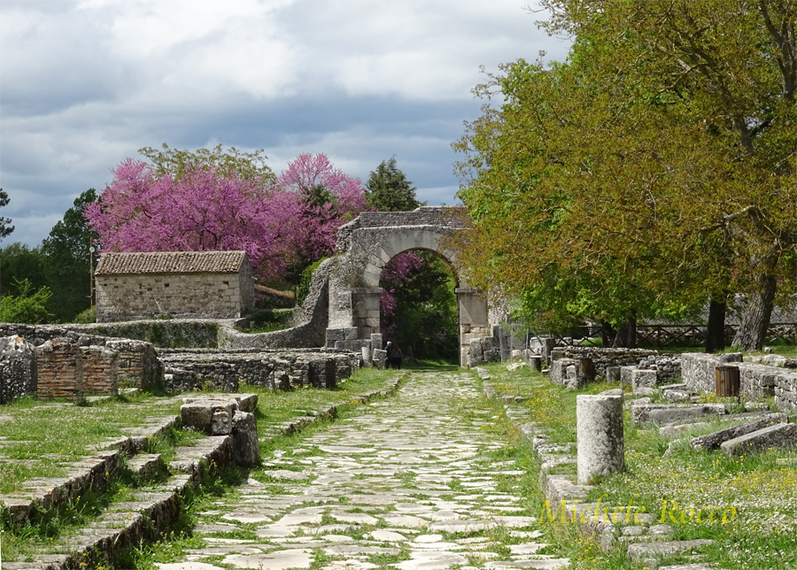 Un sito archeologico di straordinario interesse. Nato con i Sanniti nel V sec. a.C, in quanto punto di passaggio di greggi e armenti, si sviluppò, un paio di secoli dopo, in epoca romana, con la realizzazione della cinta muraria, un recinto, da cui la deniminazione di Saepinum. L'impianto dell'insediamento è a forma quadrangolare e fa meraviglia come in un'area relativamente piccola (a confronto di Pompei od Ercolano) sia stato concentrato tutto quello che caratterizza la città romana. Qui tutto è stato realizzato in pietra locale, a differenza di altre località, Roma compresa, dove è stato preponderante l'uso del laterizio. | ||
