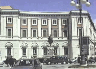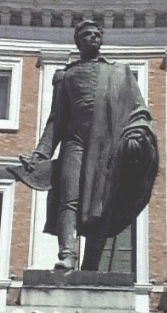 Gabriele Pepe nato nel 1779 a Civitacampomarano, parente di Vincenzo Cuoco, fu patriota, condottiero e scrittore. Aderente alla Repubblica Napoletana, fu poi esule in Francia e a Firenze. Rimane nella storia il duello con il francese Lamartine che aveva definito l'Italia "Terra dei morti"; nell'occasione il Pepe ferì ad un braccio il francese e, pago, glielo fasciò con il suo fazzoletto. Tornò a Napoli per divenire nel 1848 capitano della guardia nazionale. Al tempo fu confuso con Guglielmo Pepe (fu questa, forse, la causa principale del duello) distante per nascita e per carattere. Per eliminare il malinteso, solo dopo molti anni dalla sua morte, nel consiglio Provinciale del 1891 si cominciò a parlare di un monumento. Nel 1903, il prete di Civitacampomarano, non originario del luogo e poco accolturato sulle gesta del famoso condottiero, si disfa delle ossa dei Pepe, conservati nella Chiesa di san Giorgio martire; il fatto indigna la popolazione e l'eco percorre l'intero Molise. Fu allora che il prof. Serafino Rocco del Real Liceo, propose l'erezione di un Monumento. Venne costituito un comitato onorario presieduto da Francesco D'Ovidio e, finalmente, dopo aver reperito i fondi, nel 1912 l'opera fu commissionata allo scultore Francesco Jerace. Valutato, da una commissione napoletana "l'impatto ambientale", si decise, di collocare (su suggerimento dello scultore) il monumento nel posto dove si trova attualmente; lo sfondo sarebbe stato dato, successivamente, dalla costruzione di un elegante palazzo, quello della Banca d'Italia. L'anno dopo, il 27 luglio 1913 il monumento fu inaugurato alla presenza di Emanuele Filiberto di Savoia, su incarico del Re Vittorio Emanuele III. |