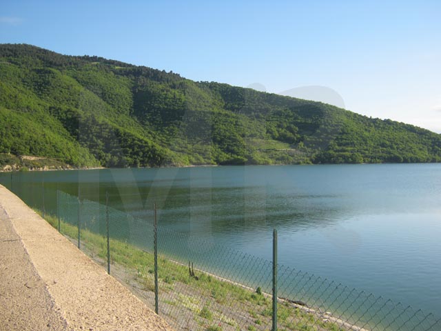 Il lago visto dal versante opposto alla diga, territorio di Gambatesa, Tufara, Ponte dei Tredici Archi.
