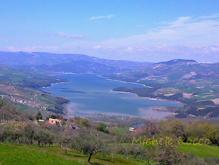 Il lago nel periodo estivo visto dal territorio di Colletorto. Sul lato opposto Monte San Giovanni (Carlantino).