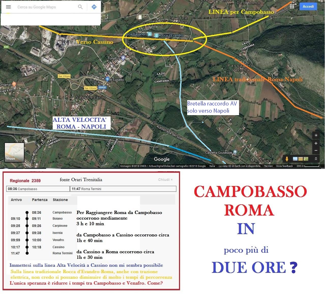 I nostri treni regionali (sul lato Venafro) non possono immettersi nell'Alta Velocità, da un lato per motivi strettamente tecnici (adeguatezza a quella linea), dall'altro perchè non esiste un punto di allaccio (verso Roma) a Rocca d'Evandro e tantomeno a Cassino.