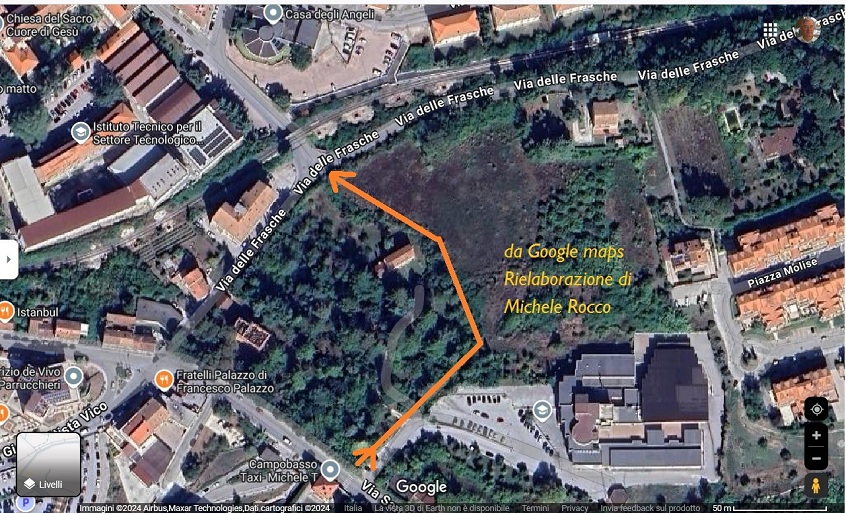 Credo che andrebbe cercata una soluzione definitiva come l'apertura di una bretella a senso unico (come in mappa satellitare Google) in accordo con i proprietari di quelle aree private. Imboccabile, dall'ingresso dell'istituto professionale e sbucando proprio su via delle frasche al ponte ferroviario.