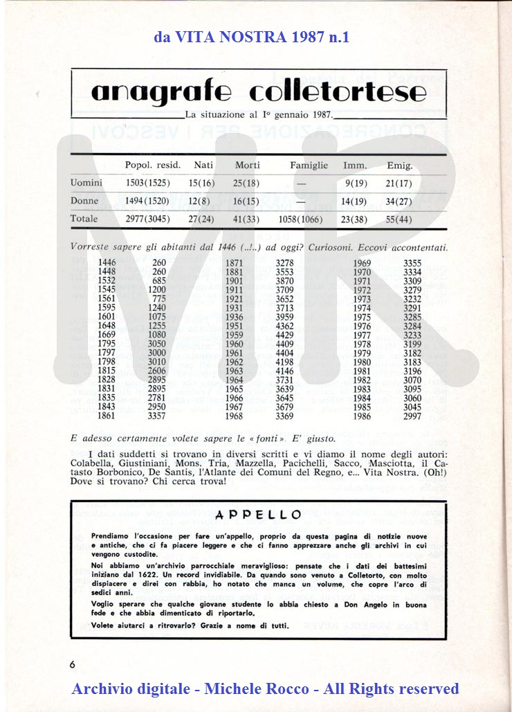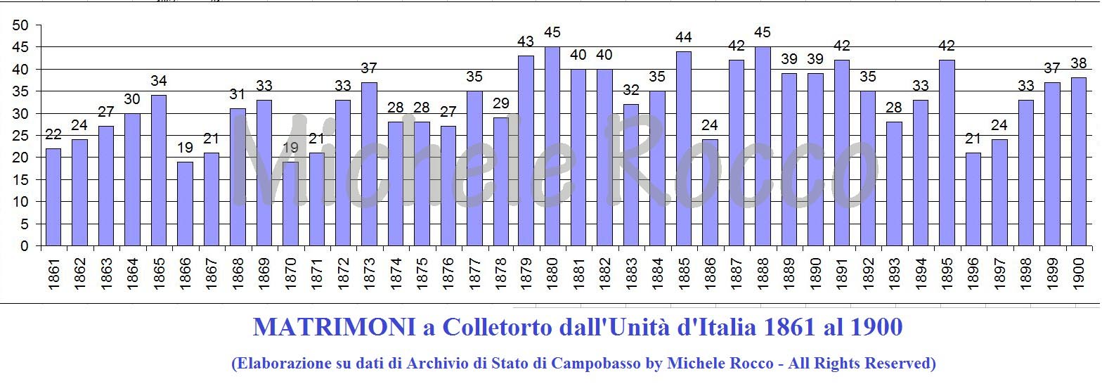 In 40 anni di Unità d'Italia ci sono a Colletorto oltre 1300 matrimoni con una media di oltre 30 all'anno |