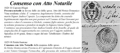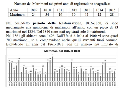 Quando si fanno i matrimoni occorre produrre dei documenti. Alcuni sono quelli che può fornire o a cui può far riferimento lo stesso Comune, come la nascita. Occorre avere la certezza dell’identità di chi si sposa e i dati devono essere anche precisi, alla virgola. All’epoca, a partire dal 1809, veniva richiesto anche il consenso dei genitori. Se questi erano in vita, davano il consenso all’atto della promessa (il matrimonio poi si teneva in chiesa). In questa promessa si diceva che erano presenti i genitori e che erano consenzienti. Immaginate all’epoca, in cui l’aspettativa di vita era relativa, i figli che si sposavano intorno ai 20, 25 anni e le donne con ad un’età leggermente inferiore rispetto quella degli uomini, poteva succedere, con una certa frequenza, che non avessero i genitori perché deceduti. Allora si doveva giustificare la loro assenza e quindi il Comune doveva acquisire il certificato di morte. Non avendo questi certificati nel proprio archivio comunale, in funzione solo dal 1809, si dovevano acquisire questi documenti da un archivio già funzionante, che era quello della Chiesa, Archivio Parrocchiale. Quindi ci si rivolgeva al parroco per richiedere l’attestato di morte dei genitori dei contraenti (sposo o sposa). Se il genitore era deceduto, la legge imponeva che a dare il consenso fosse l’avo (il nonno o la nonna) e, in caso di decesso anche di questi (cosa ancora più ricorrente) occorreva allegare il certificato di morte anche dell’avo. E questi attestati venivano chiesti all’Arciprete. |