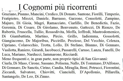 Sempre con l’uso dei filtri del foglio elettronico ho individuato i Cognomi più ricorrenti, ma non è detto che quelli posti per prima, come Graziano ecc., siano i più numerosi.