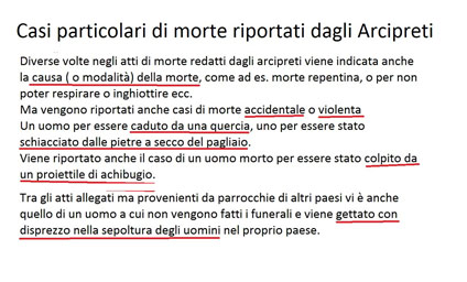 I documenti presenti negli archivi anagrafici non ci permettono di spingerci ulteriormente nel tempo, ma abbiamo fatto comunque un salto, in qualche caso, anche di oltre tre secoli. |