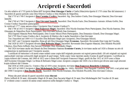 Don Francesco Magri a cui segue l’Economo Don Giuseppe Magri per arrivare a Belisario Magri.