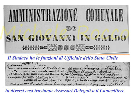Il Comune di San Giovanni in Galdo per un lungo periodo, come risulta nell'intestazione degli atti, era ubicato in via del Giglio e, credo, che condividesse gli stessi locali del Giudicato regio, che, per quanto riportato in Largo dei Fiorentini. Infatti, a fare da testimoni troviamo gli uscieri del Giudicato e, a volte, anche il Cancelliere, se non lo stesso Pretore. Normalmente questi testimoni erano persone che venivano chiamate al momento. Potevano essere artigiani o commercianti che abitavano lì vicino, persone sul tipo del pensionato di oggi. In alcuni periodi ci sono nomi ricorrenti e spesso sono serventi comunali o becchini (negli atti di morte in particolare). Recentemente sullo stesso palazzo è stata posta una targa in ricordo di Pasquale Ioffredi (che fu Consigliere regionale). Il Sindaco Credico, qui presente, evidenzia come quel palazzo sia una costruzione risalente al 1400 ed era un immobile isolato. |