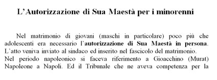 Autorizzazione di Sua Maestà il Re di Napoli per minorenni |