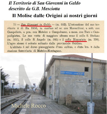 Il punto più alto del territorio, posizionato a Nord del paese, è il Colle Rimontato (Core Mnnat), dove si trova anche il Tempio Italico. Mentre il punto più basso (370 mt) si trova al confine tra i territori di Toro e Monacilioni. Poco più avanti il Fiumarello sfocia nel Torrente Tappino che, a sua volte, è affluente del fiume Fortore. Questo è quanto ho scritto sull’orografia del territorio. Il libro e frutto di una ricerca sugli atti anagrafici, ma parlando del paese, così come avevo fatto con il CD-ROM su San Giovanni (dedicato unicamente agli aspetti del paese), ho voluto inserire questi elementi relativamente al territorio. |