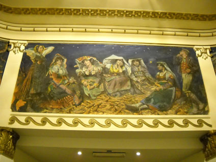 In quest’ultima foto sono rappresentati alcuni costumi molisani, cosi come li ha affrescati l'artista Arnaldo De Lisio al Teatro Savoia di Campobasso. Mi si dice che solo uno è il costume tipico di San Giovanni. E qui voglio ricordare il Prof. Nicolino Di Donato da poco scomparso, che con il gruppo folcloristico degli Zig-Zaghini ha fatto conoscere le tradizioni del paese in tutto il mondo. |